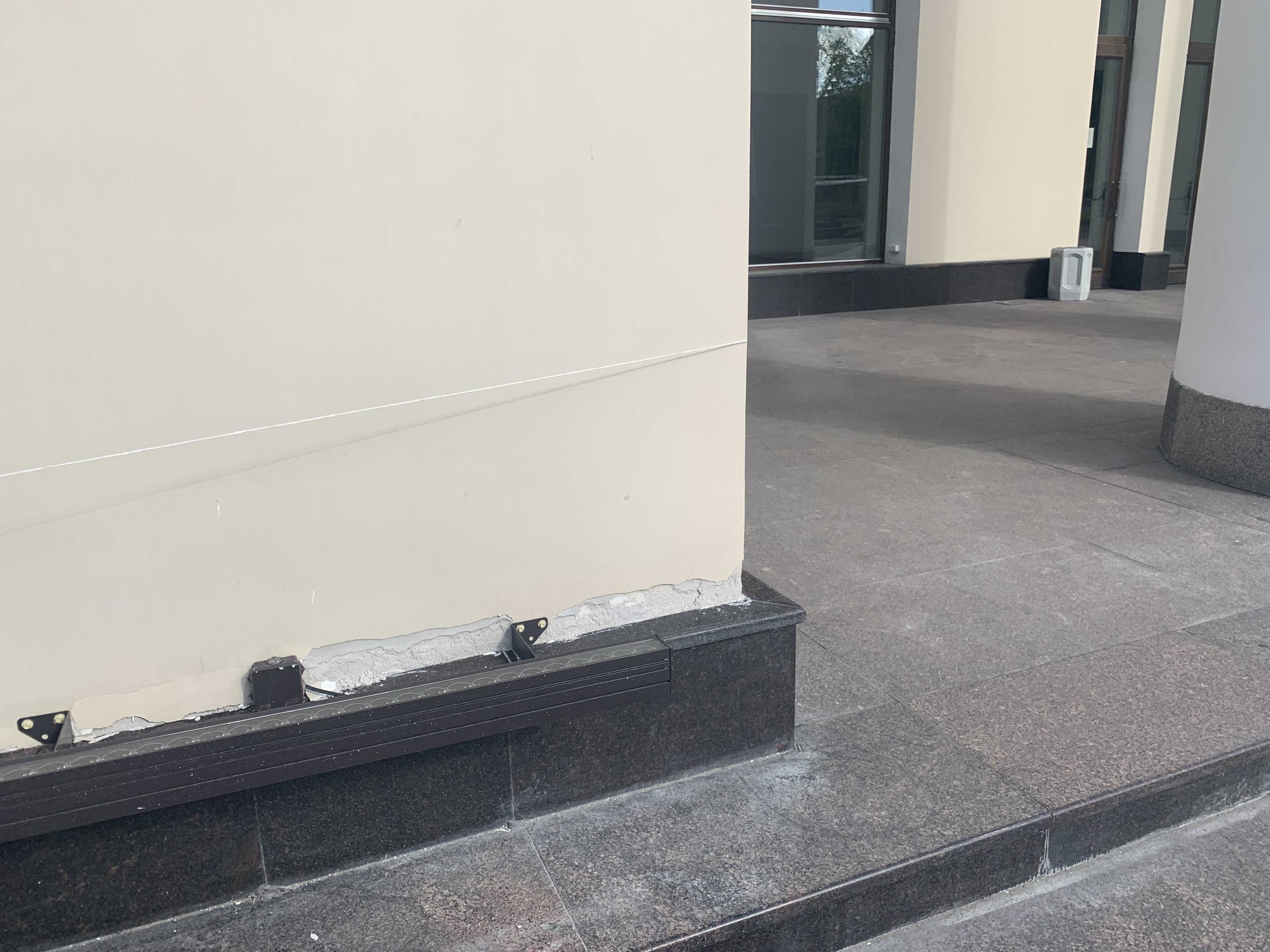 Есть трещины и на тротуарной плитке. Как минимум в одном месте, раскололась фасадная плитка.