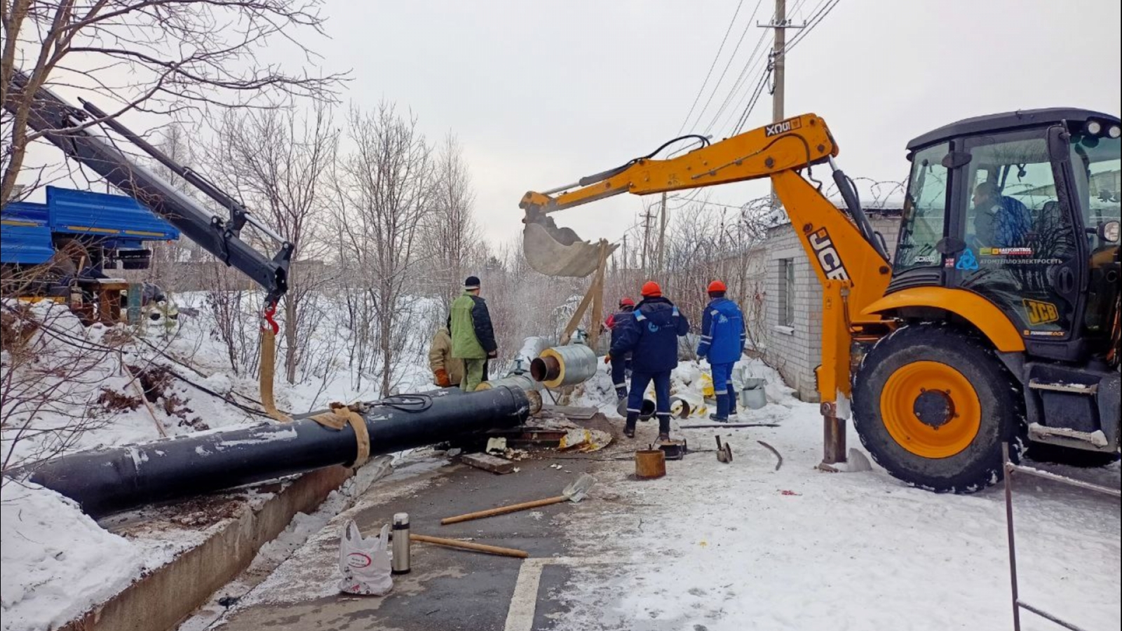 В Зашейке идут работы по восстановлению теплоснабжения. На место, где продолжается монтаж участка теплосети, приехал мэр Полярных Зорь Максим Пухов.