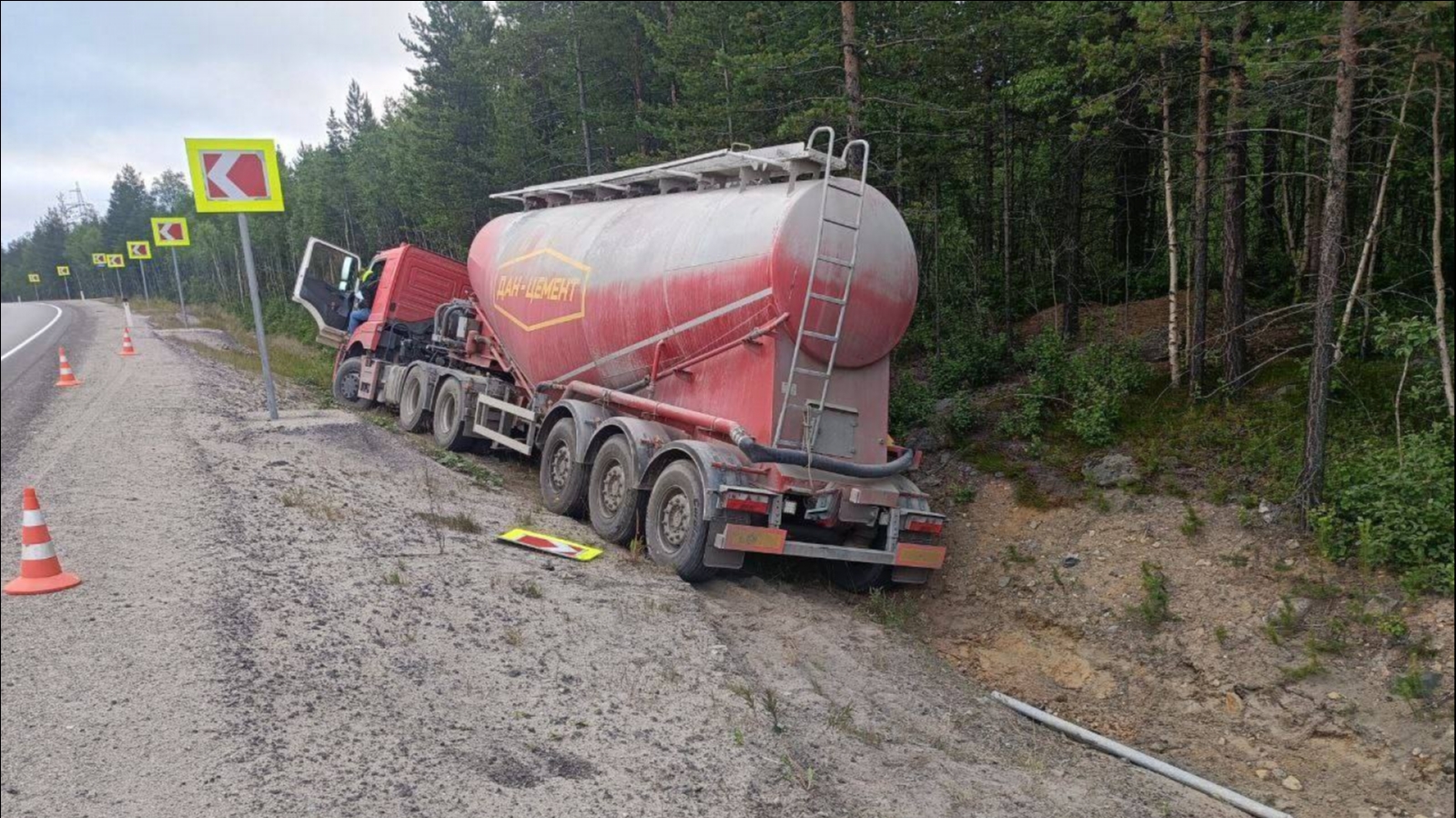 По предварительным данным, в Кольском районе около 19.10 в районе 1326 км + 920 м автодороги «Кола» Р-21 53-летний житель города Мурманска, управляя автомобилем КАМАЗ Т2642 с полуприцепом BONUM 914230, съехал в правый кювет по ходу движения, в результате чего получил травмы различной степени тяжести. Он доставлен в медицинское учреждение.