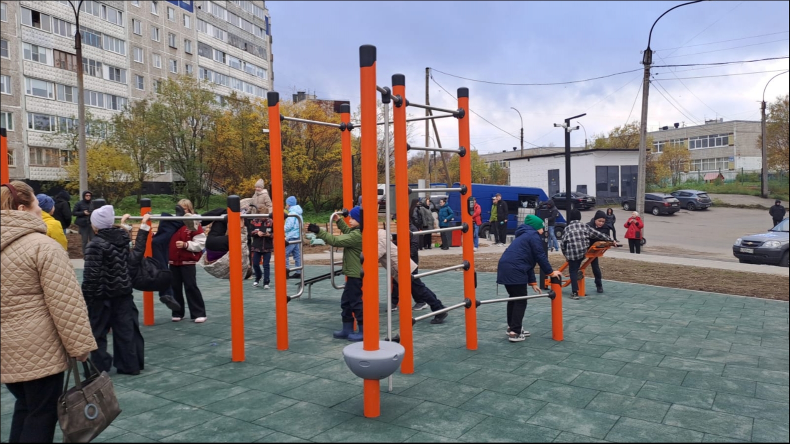 В Мурманске на улице Шабалина в эти минуты проходит торжественное открытие новой спортивной площадки.