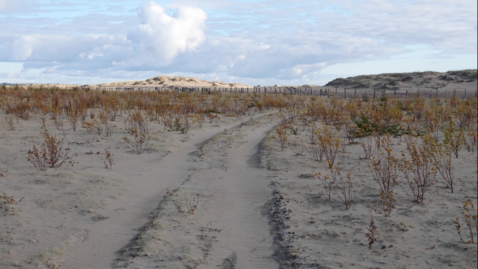 «Посадки потихоньку растут и крепчают, что не может не радовать... К сожалению, народ продолжает ездить, где попало, в том числе и по посаженным волонтерами деревцам... Уже сформировалось что-то даже подобия дороги. Видно, что кто-то буксовал не так давно, пустыня наказывает за безалаберность».