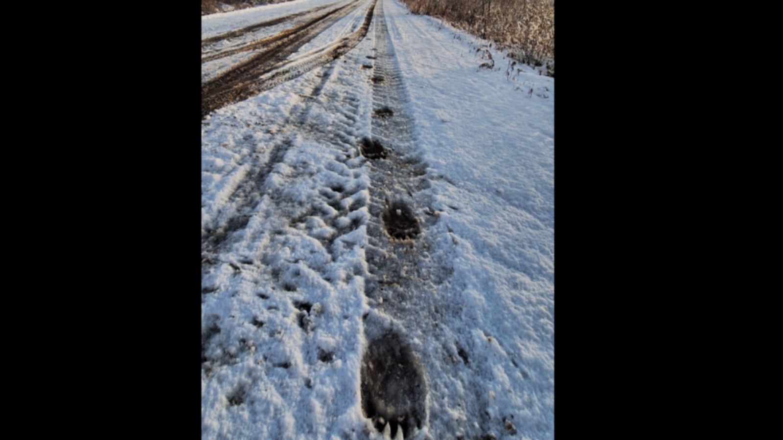 В Туманном местные жители в пятницу, 17 октября, обнаружили следы медведя на снегу. Животное прошлось прямо по проезжей части.