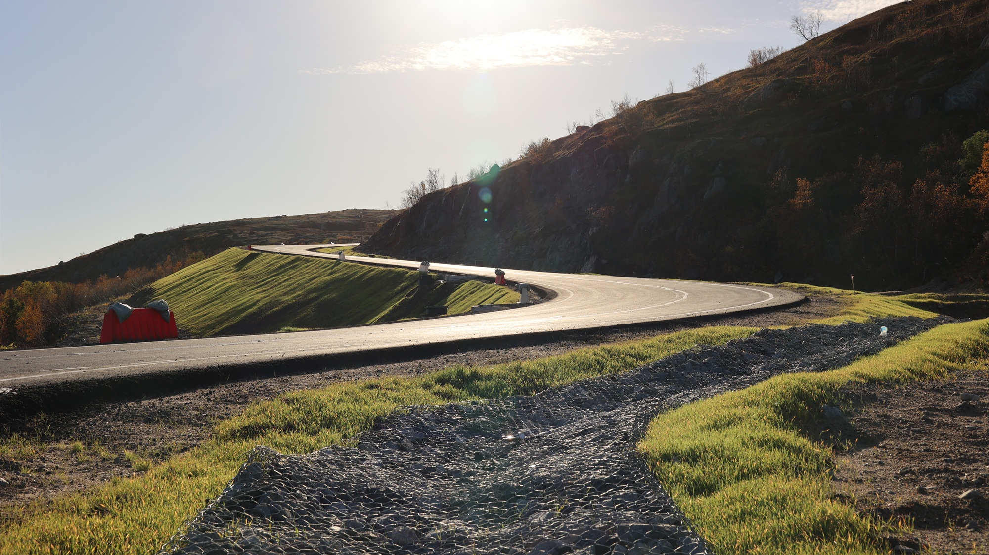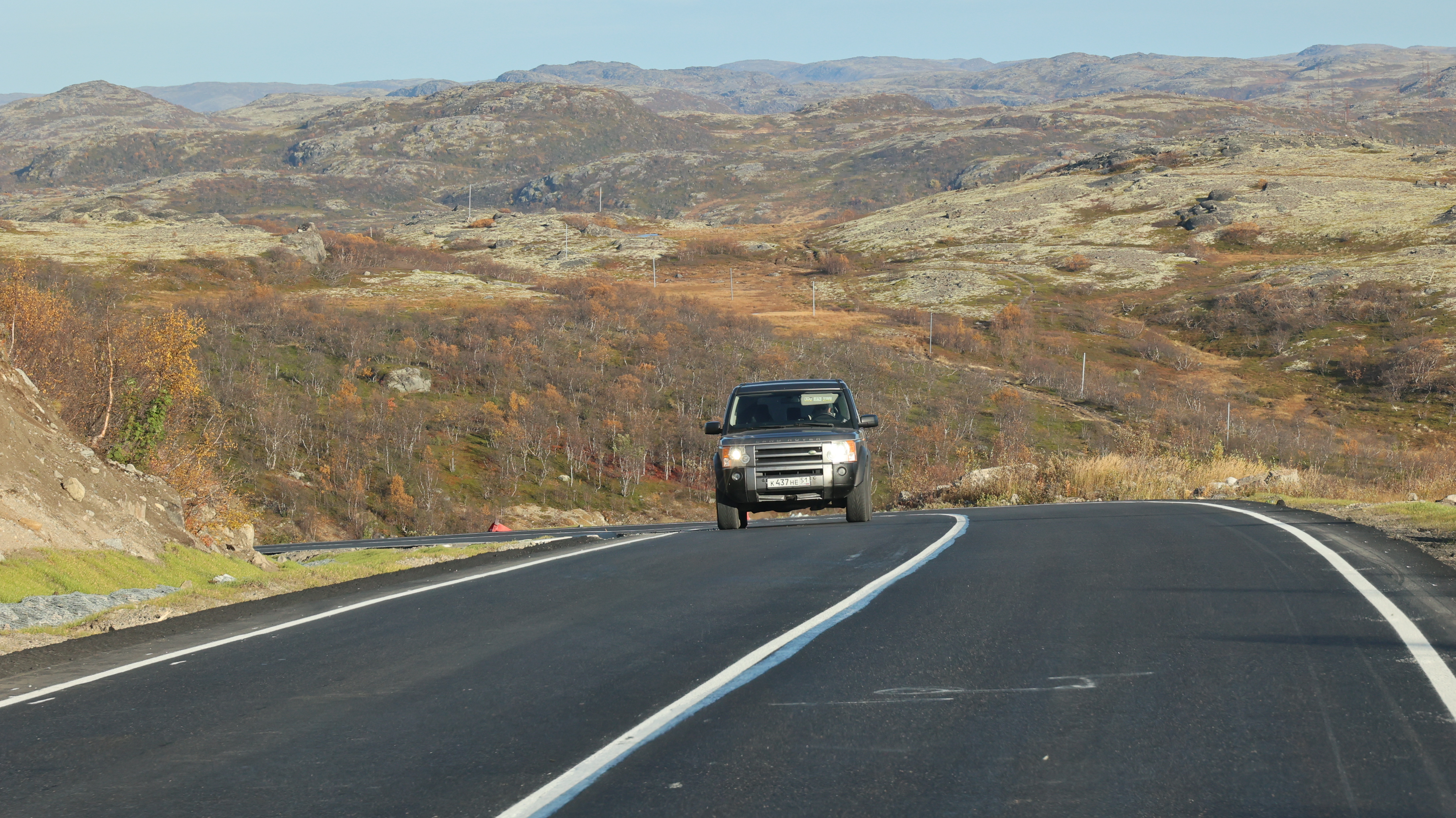 Большой объем работ на дороге в Териберку был выполнен в прошлом году. Строителям пришлось проводить масштабные буровзрывные работы для рыхления скальных грунтов, поднимать земляное полотно до трёх метров относительно старой дороги. Также было произведено устройство водоотводных и очистных сооружений и многослойной дорожной одежды с применением геотекстиля.