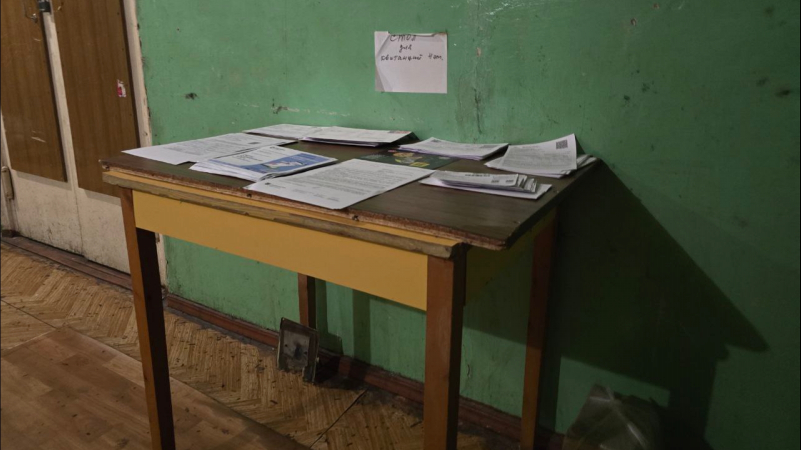 Причина проста: их в принципе нет ни на лестничной клетке, ни в коридоре 4 этажа. С передачей почтовых сообщений в доме №9 на улице Фестивальной справляются обычные обеденные столы.