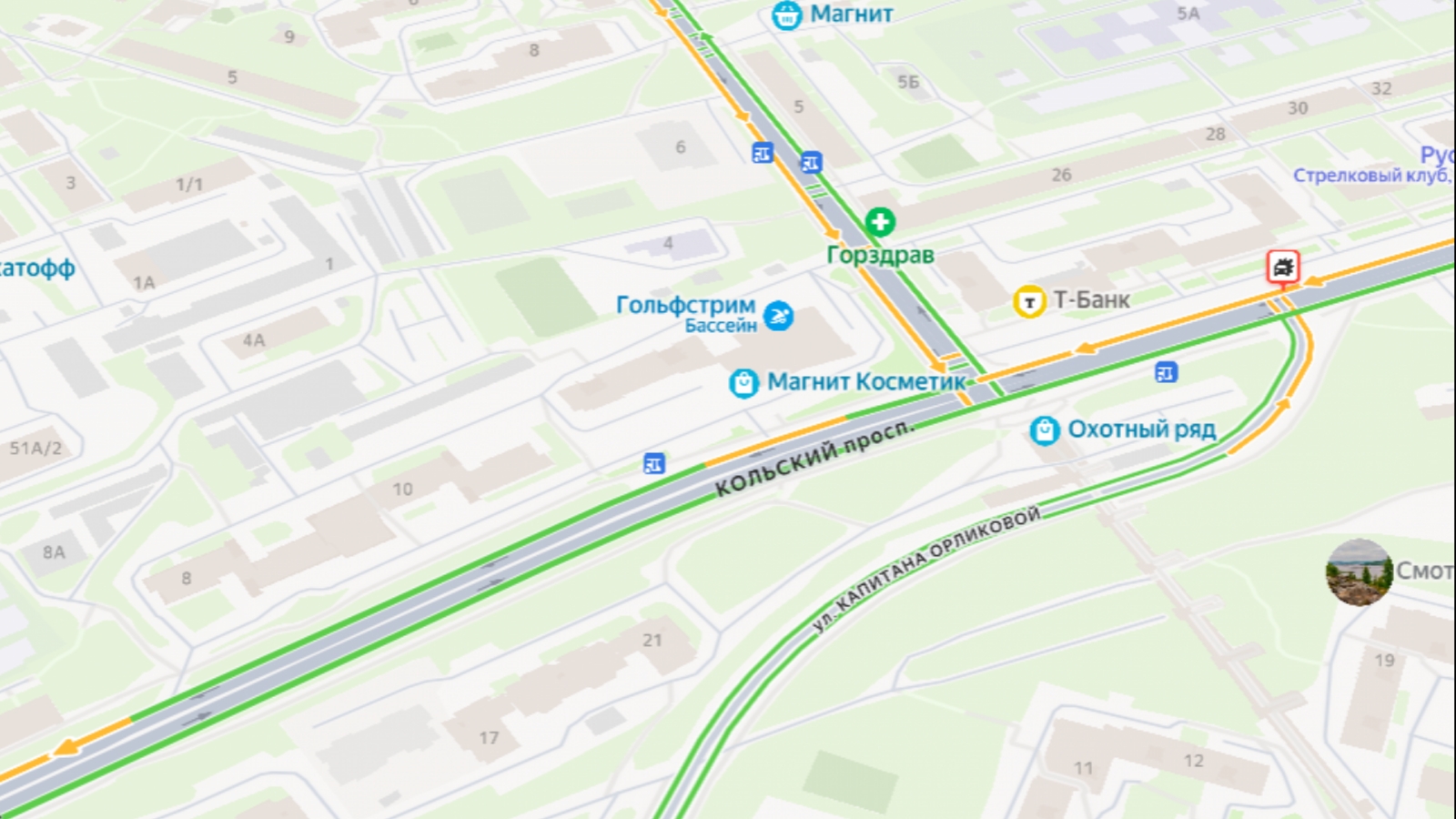 В Мурманске на проспекте Кольском у выезда с улицы Орликовой столкнулись две машины. Проезд затруднён.