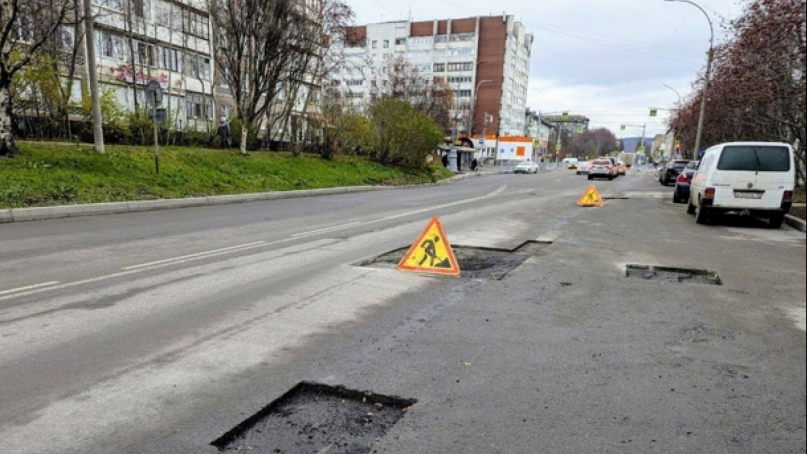 В Мурманске на улице Академика Книповича местами сняли асфальт для заделывания образовавшихся дыр.