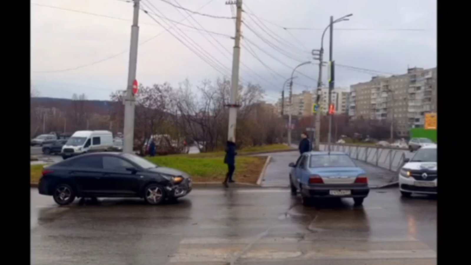 В результате аварии одна из легковушек развернулась и едва не сбила двух человек, которые стояли на тротуаре в ожидании зелёного сигнала светофора.