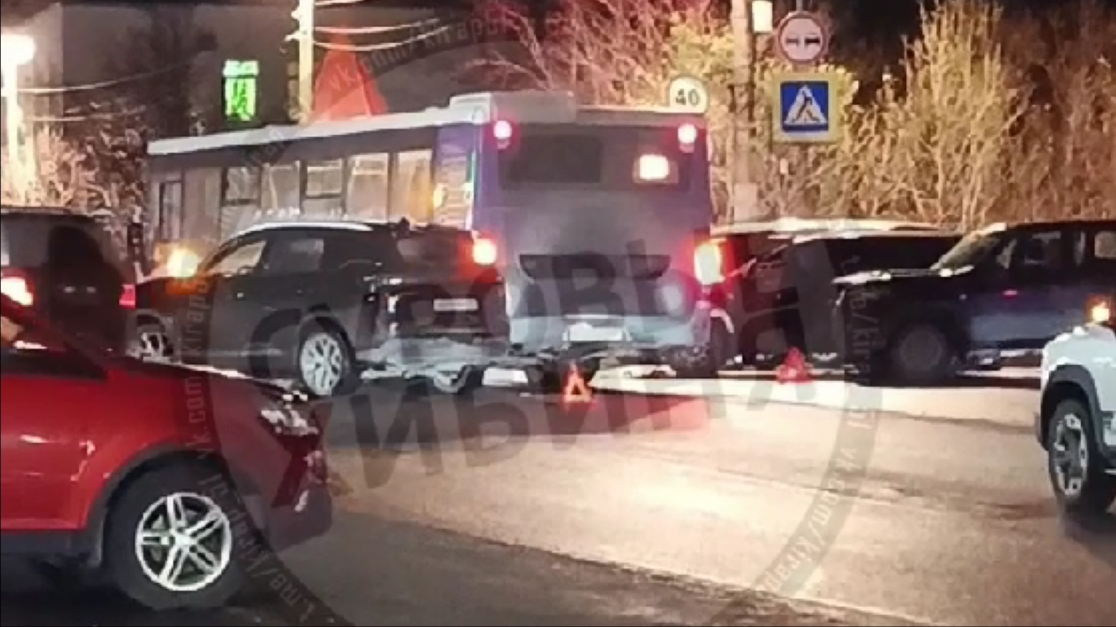 Теперь на дороге, кроме трёх авто, стоят ещё автобус и Chery.