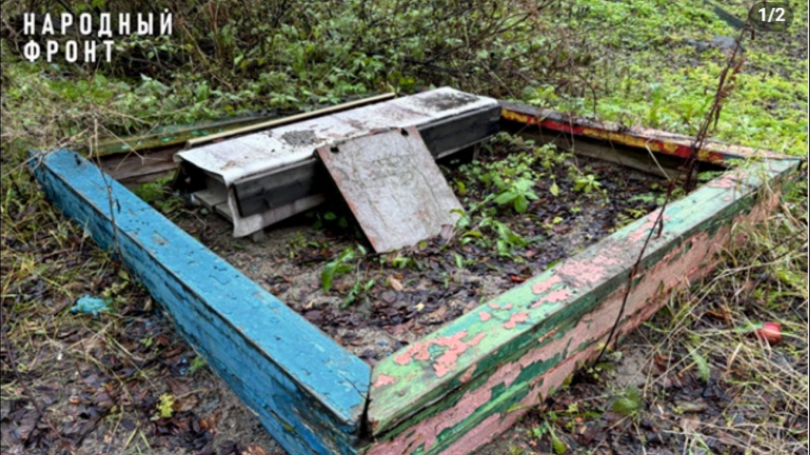 Народный фронт обратил внимание управляющей компании «Решение» на сомнительный артефакт в виде облезлой заброшенной деткой площадки в Мурманске.