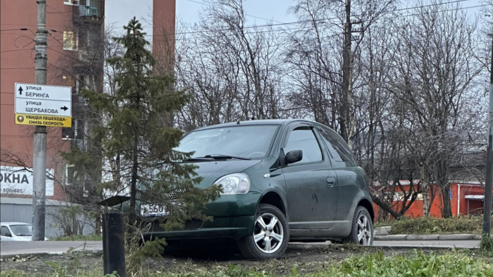 В районе улиц Беринга и Щербакова в Мурманске автолюбитель выбрал весьма замысловатый способ парковки.