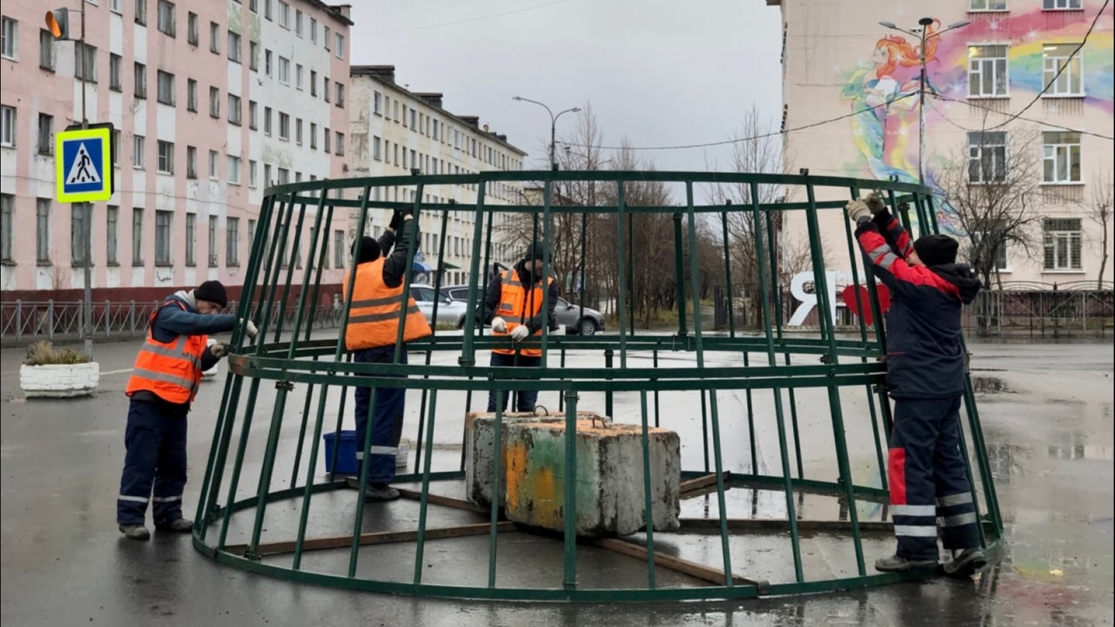 На главной площади Никеля устанавливают новогоднюю ёлку. Об этом рассказали в администрации Печенгского округа.
