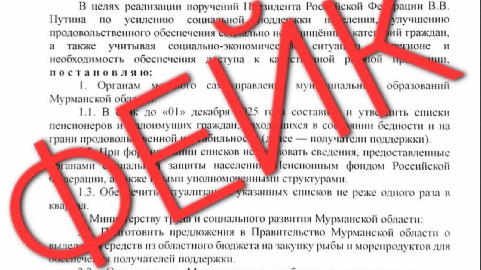 Постановление якобы о выделении средств из областного бюджета на закупку рыбы и морепродуктов для пенсионеров и малообеспеченных граждан является фейком. Об этом сообщили в telegram-канале оперативного штаба региона.