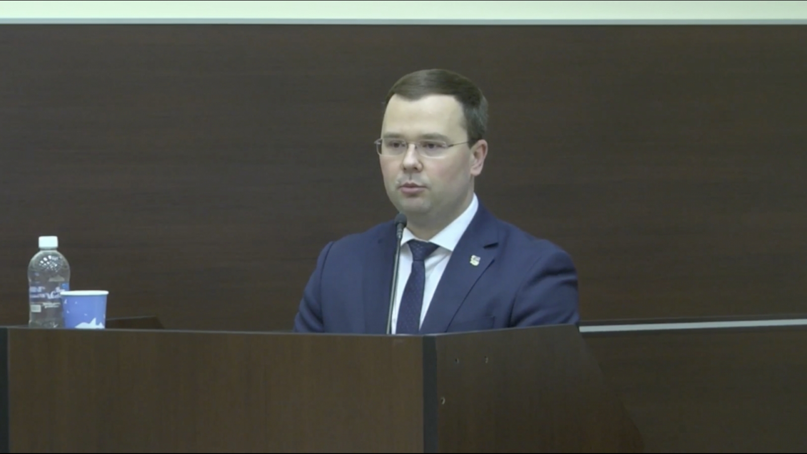 В Совете депутатов Мурманска идёт выступление претендента на пост мэра города Ивана Лебедева.