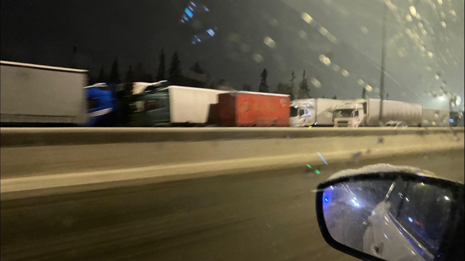 На выезде из Мурманска полиция останавливает фуры.Там образовалась огромная пробка.