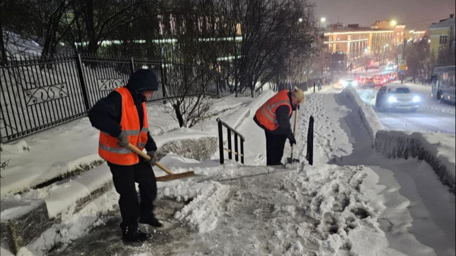 По его словам, в пятницу на линию вышли 105 единиц специальной техники. Уборку тротуаров, остановочных площадок и лестниц выполняют 146 рабочих. За сутки вывезено 460 куб. м снега, применено 270 тонн пескосоляной смеси.