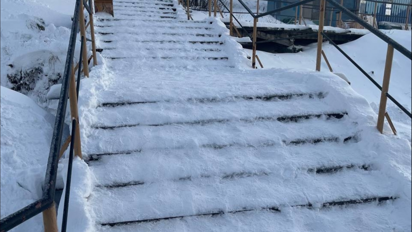 Жители Мурманска обратили внимание на качество уборки лестницы, соединяющей две главные городские библиотеки.