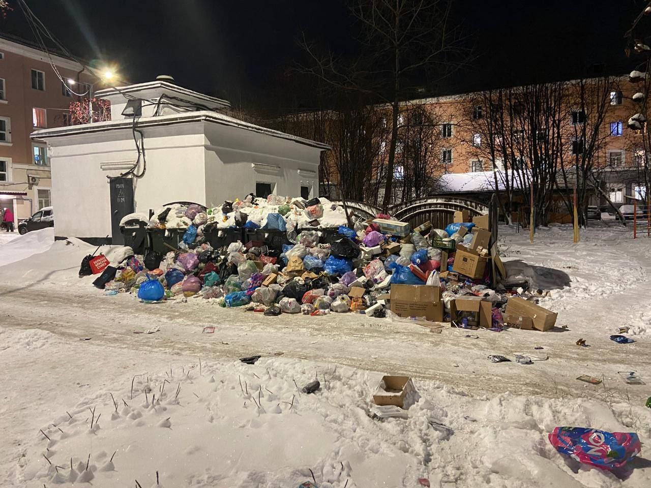 На Челюскинцев, 20 в Мурманске также «растёт мусорный Монблан».