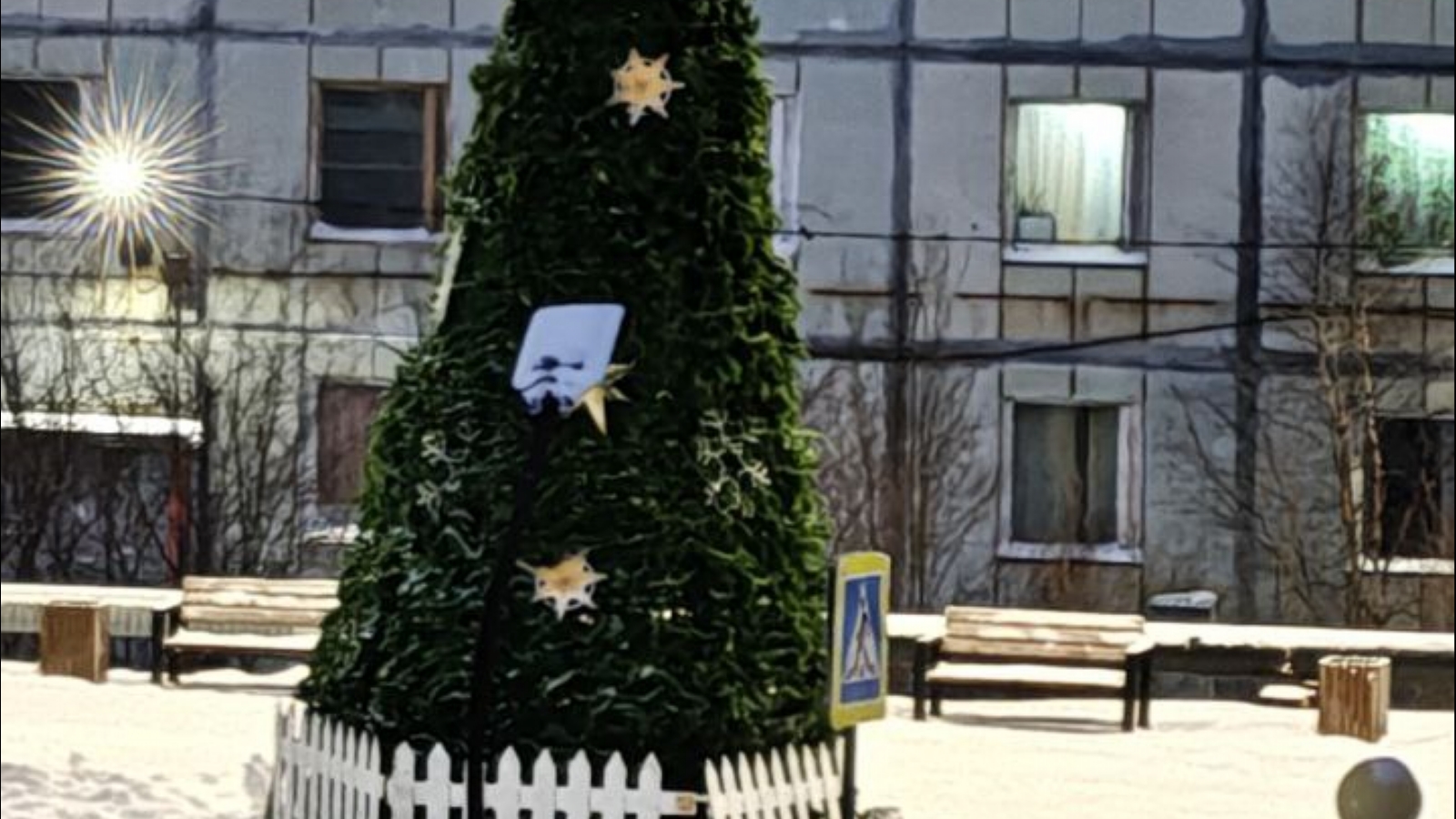 После общественного резонанса городская ёлка в Оленьей Губе не только была поднята с земли, но и приведена в порядок.