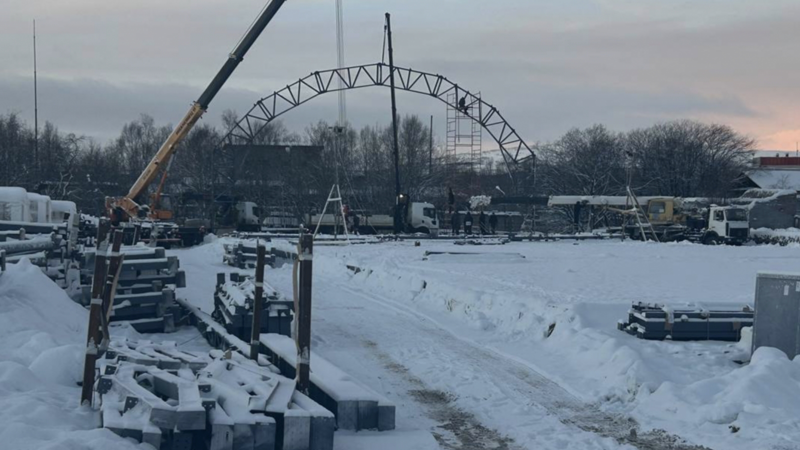 Процесс монтажа нового спорткомплекса в Мурманске попал на [видео]
