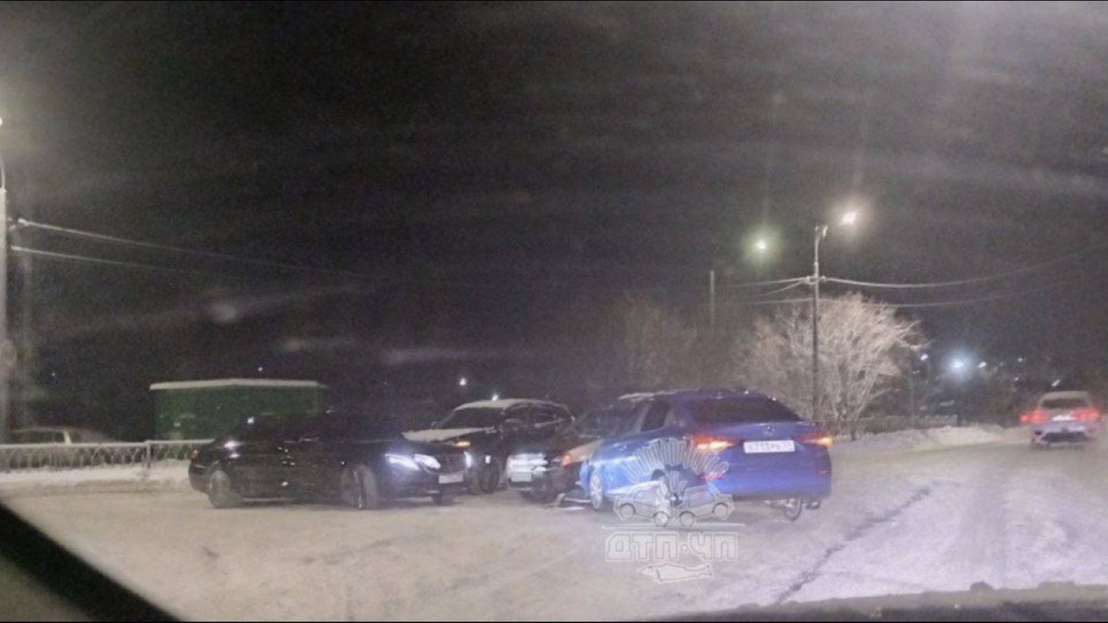 На улице Инженерной в Мурманске столкнулись четыре автомобиля.