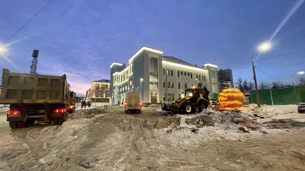 По периметру здания бывшего кинотеатра сняли ограждение. На месте работают снегоуборочная техника и дворники.