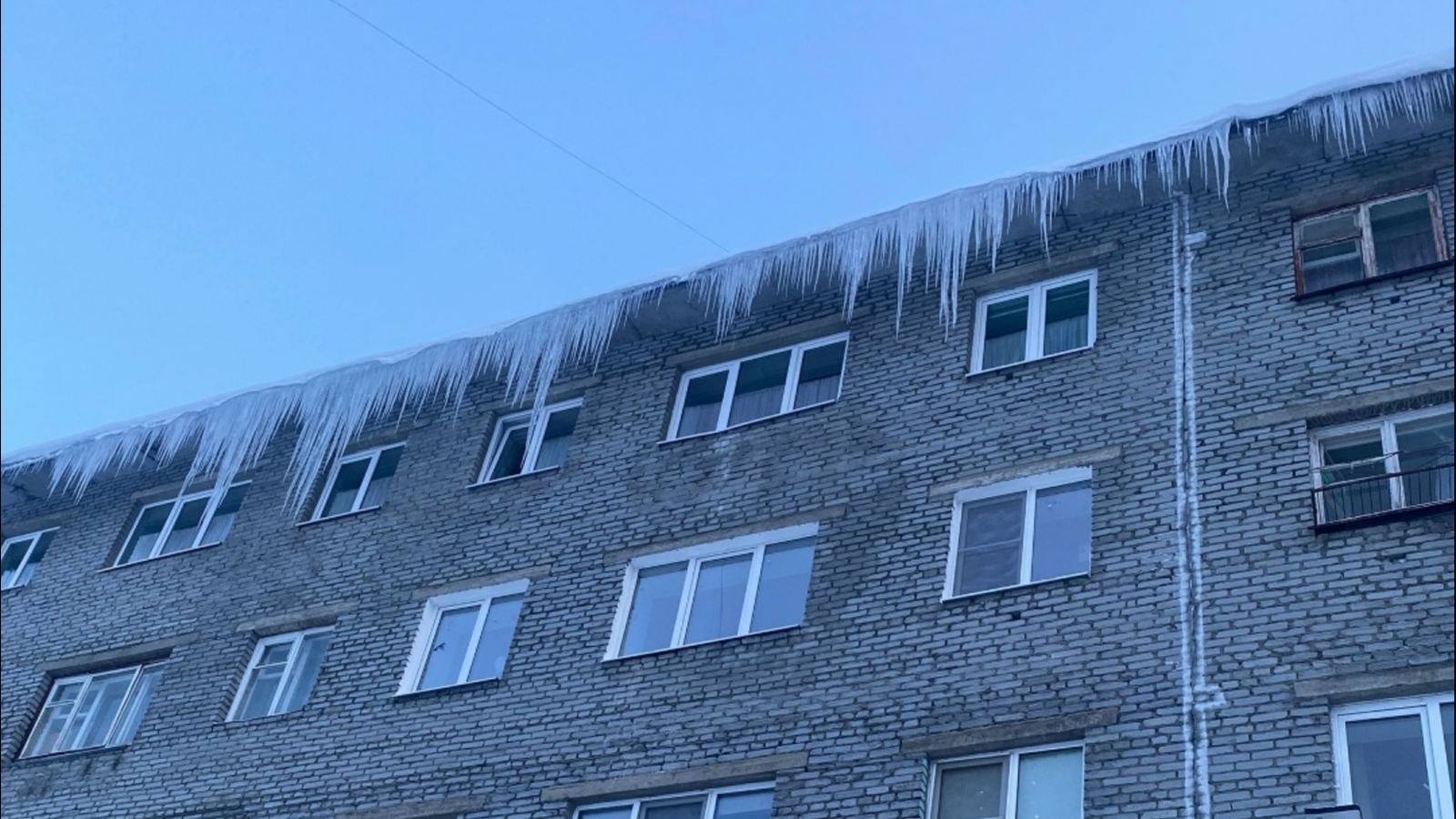 Жители Белого моря жалуются, что в доме №2 уже более двух недель не могут сбить сосульки. Они «доросли» с крыши ниже уровня пятого этажа.