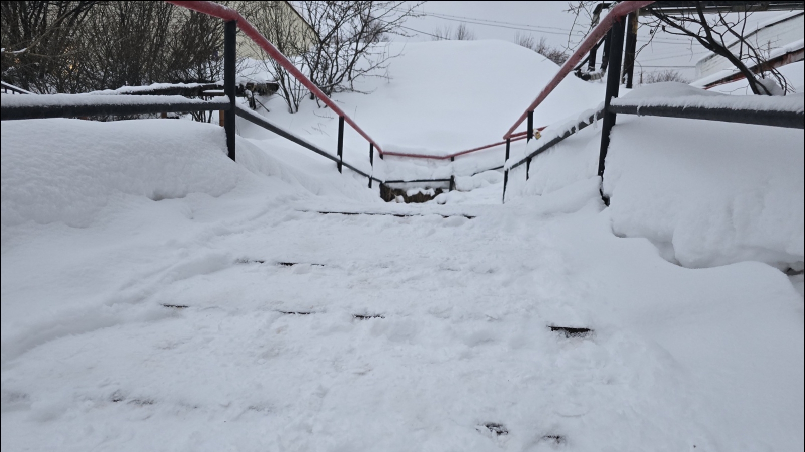 Жители заполярной столицы пожаловались СеверПост на качество уборки лестницы на улице Подгорной.