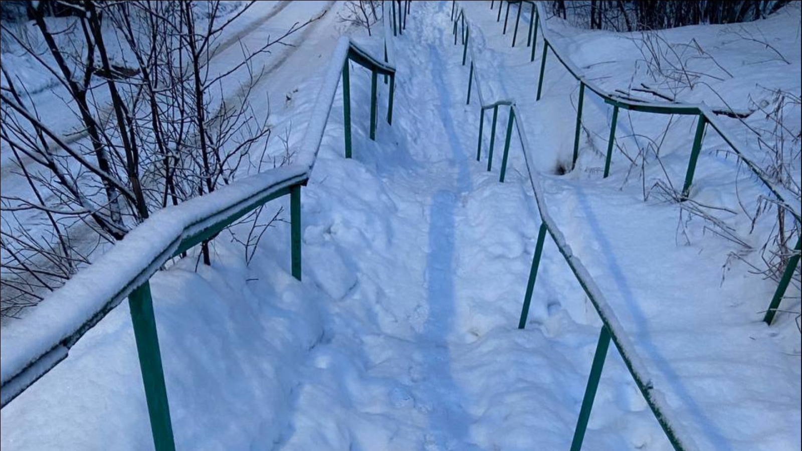 Жители Абрам-мыса сообщили о том, что чистка придомовых территорий, а особенно лестниц ведётся недостаточно активно. В частности, лестница у дома №4 на улице Лесной вся заметена снегом, по ней сложно ходить, разве что кататься с этой «горки» на ледянке.