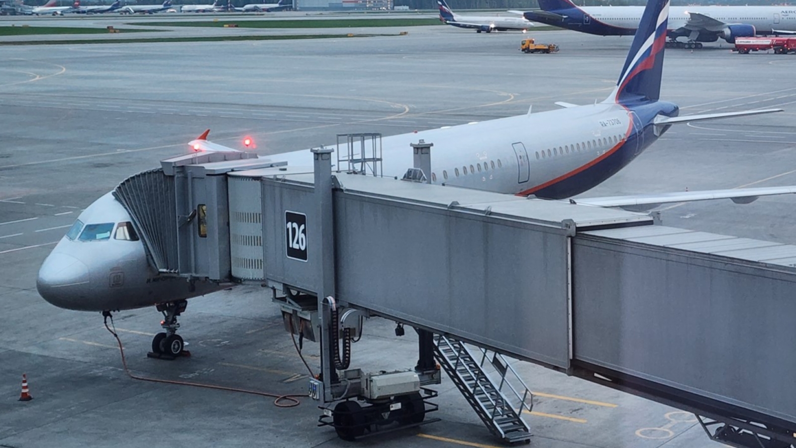 Рейс авиакомпании Smartavia 5N518 готовится к вылету. Посадка на самолёт завершена. Рейс отправится на полтора часа позже запланированного в расписании.