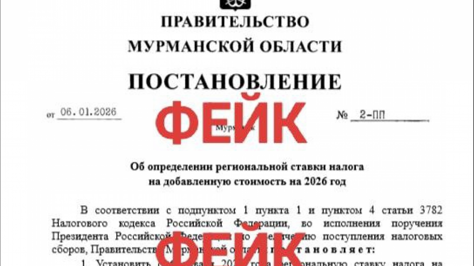 В поддельном документе говорится, что якобы с января установлена ставка налога на добавленную стоимость в размере 25%.