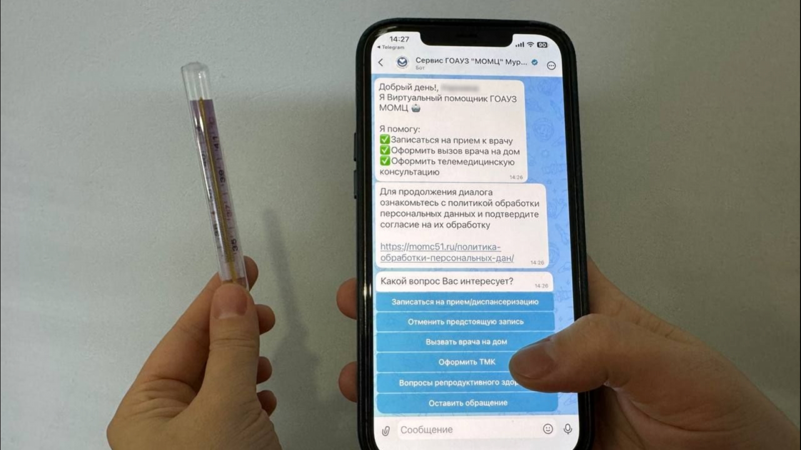 Чат-бот «Диспансеризация» позволяет записаться на диспансеризацию, на приём к врачу, оформить вызов на дом или получить телемедицинскую консультацию во взрослых поликлиниках Мурманска.