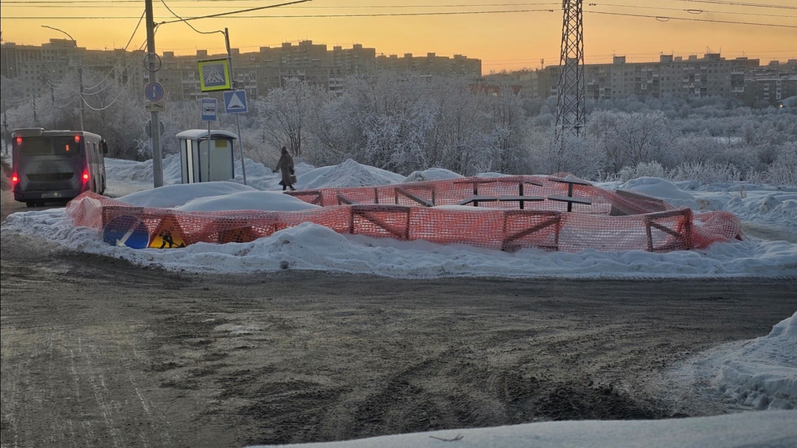 В Мурманске яму при повороте на Лыжный проезд к школе № 23 выкопали ещё год назад. Но на том и закончилось дело.