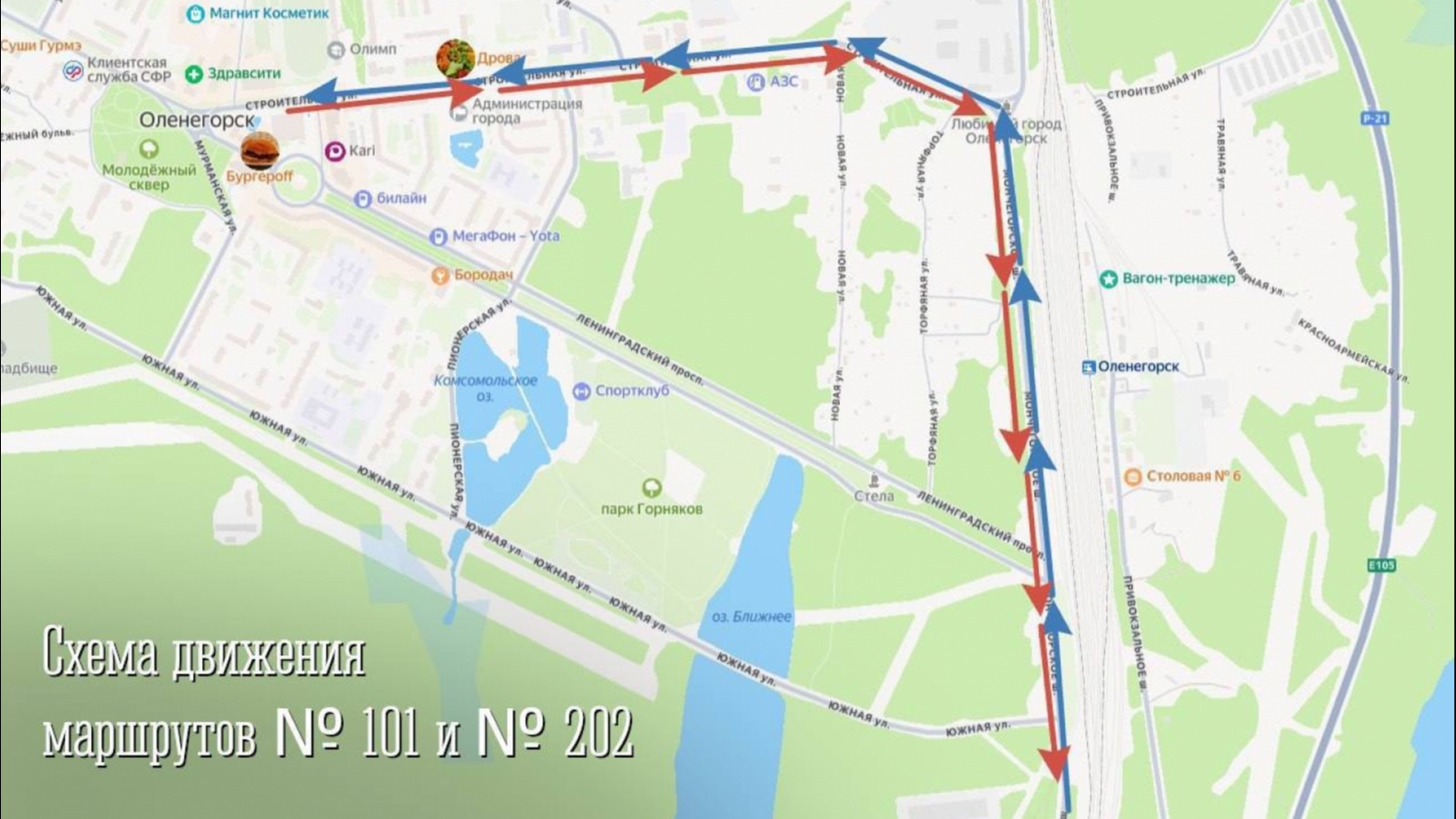 Движение автобусов по маршрутам № 101 Мончегорск - Оленегорск и № 202 Мончегорск - Оленегорск - Мурманск будет осуществляться на улице Строительной, действующая остановка «ул. Строительная, 40 (Ледовый дворец)».