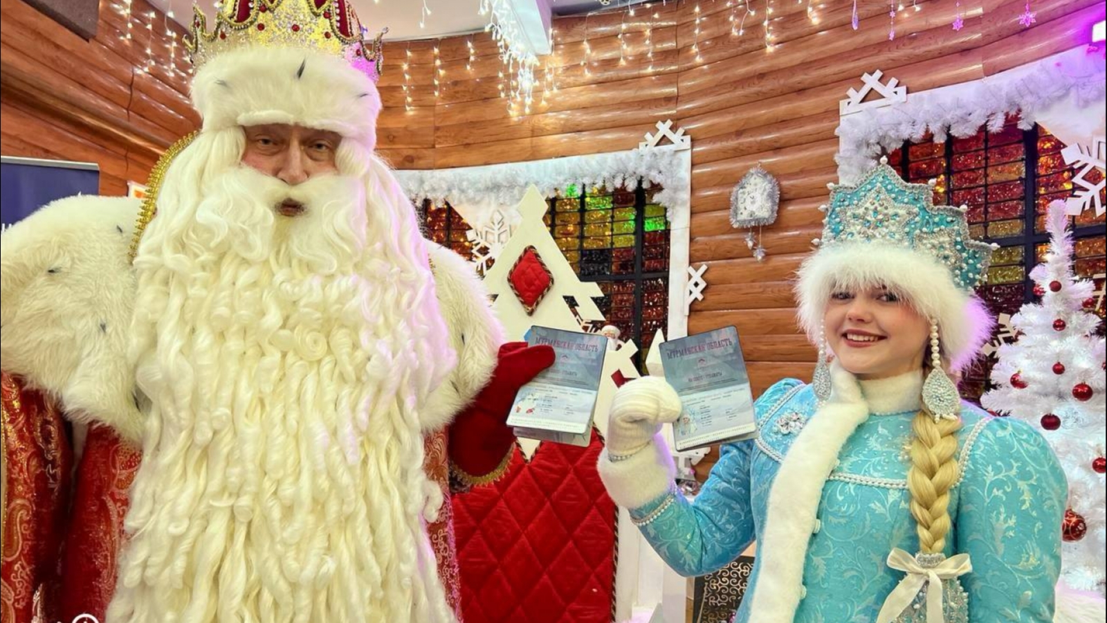 За многолетнюю службу в условиях снега и холода новогоднему волшебнику и его главной помощнице вручили необычный документ - «Паспорт Полярника», сообщило правительство Мурманской области.