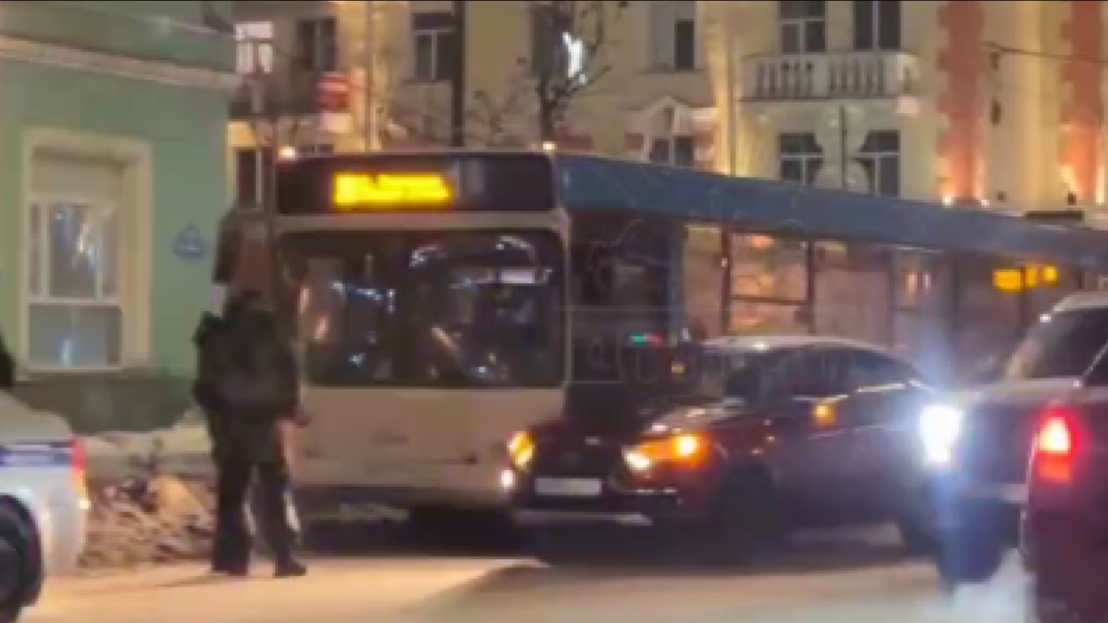 В Мурманске не поделили дорогу автобус и легковушка [видео]