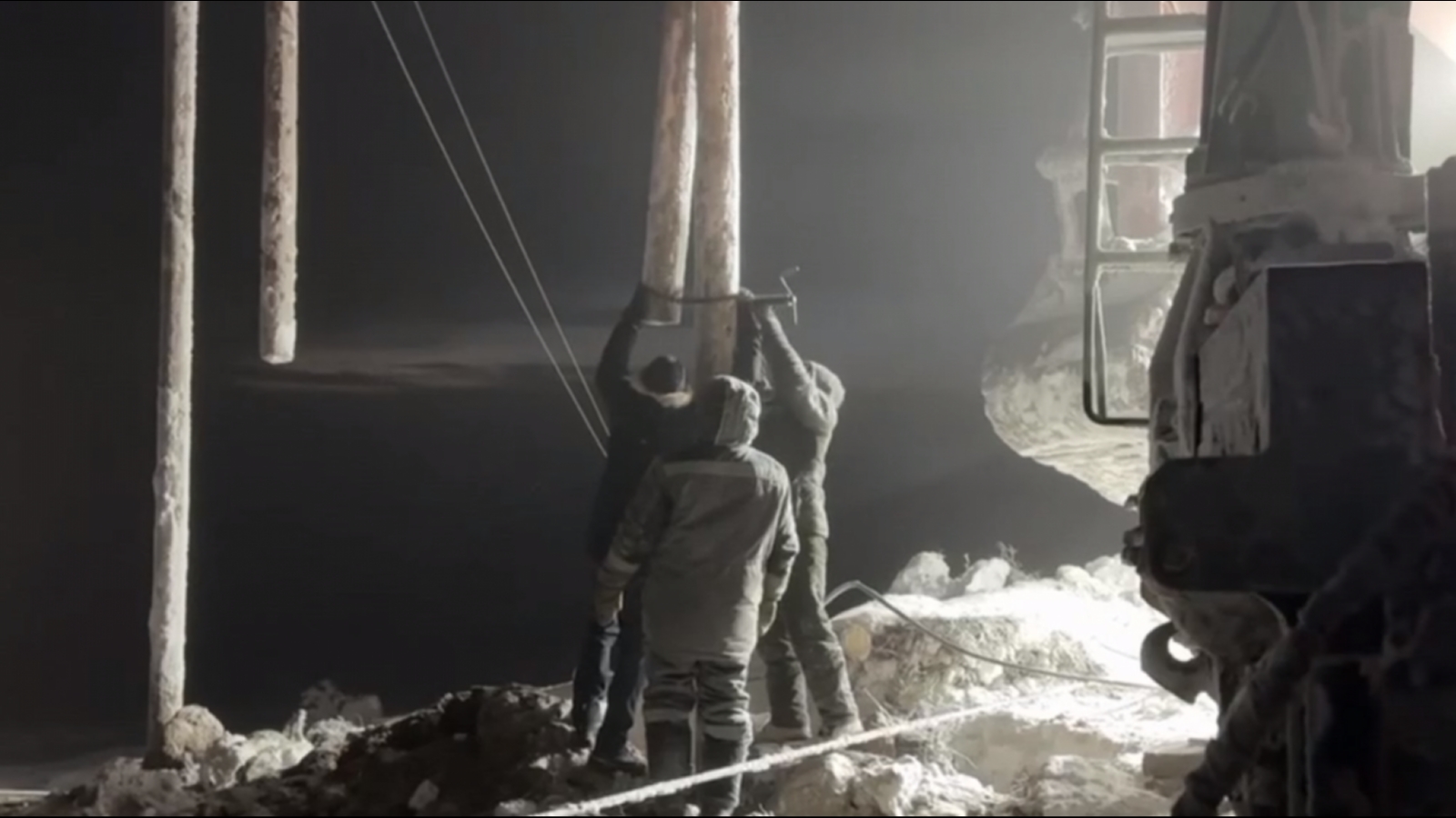 Энергетики собрали первую опору из 82 элементов. Несколько попыток установки оказались неудачными. Из-за экстремальных условий тундры ломалась даже спецтехника.