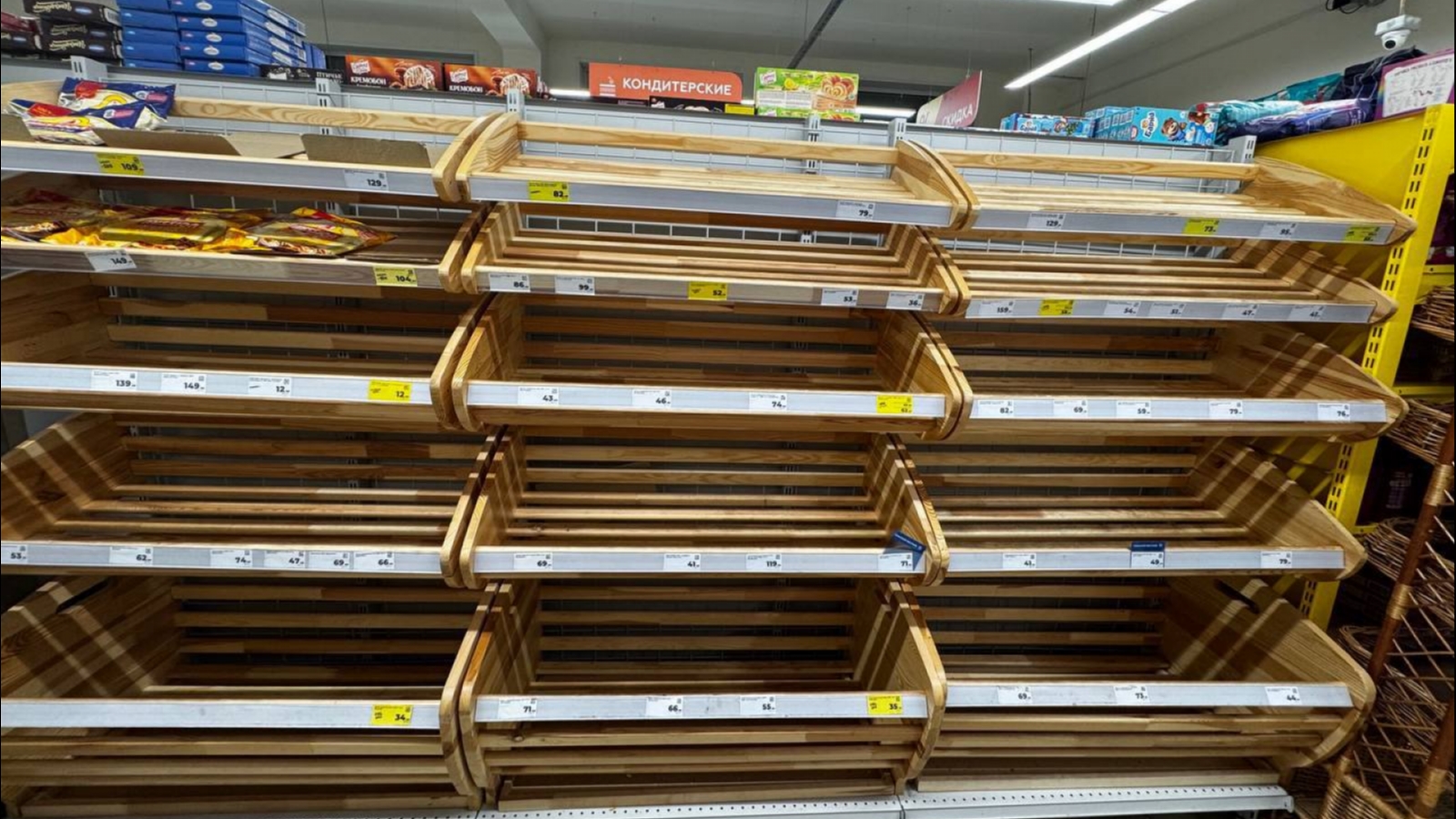 Судя по фотографиям в соцсетях, полки хлебных магазинов пусты.