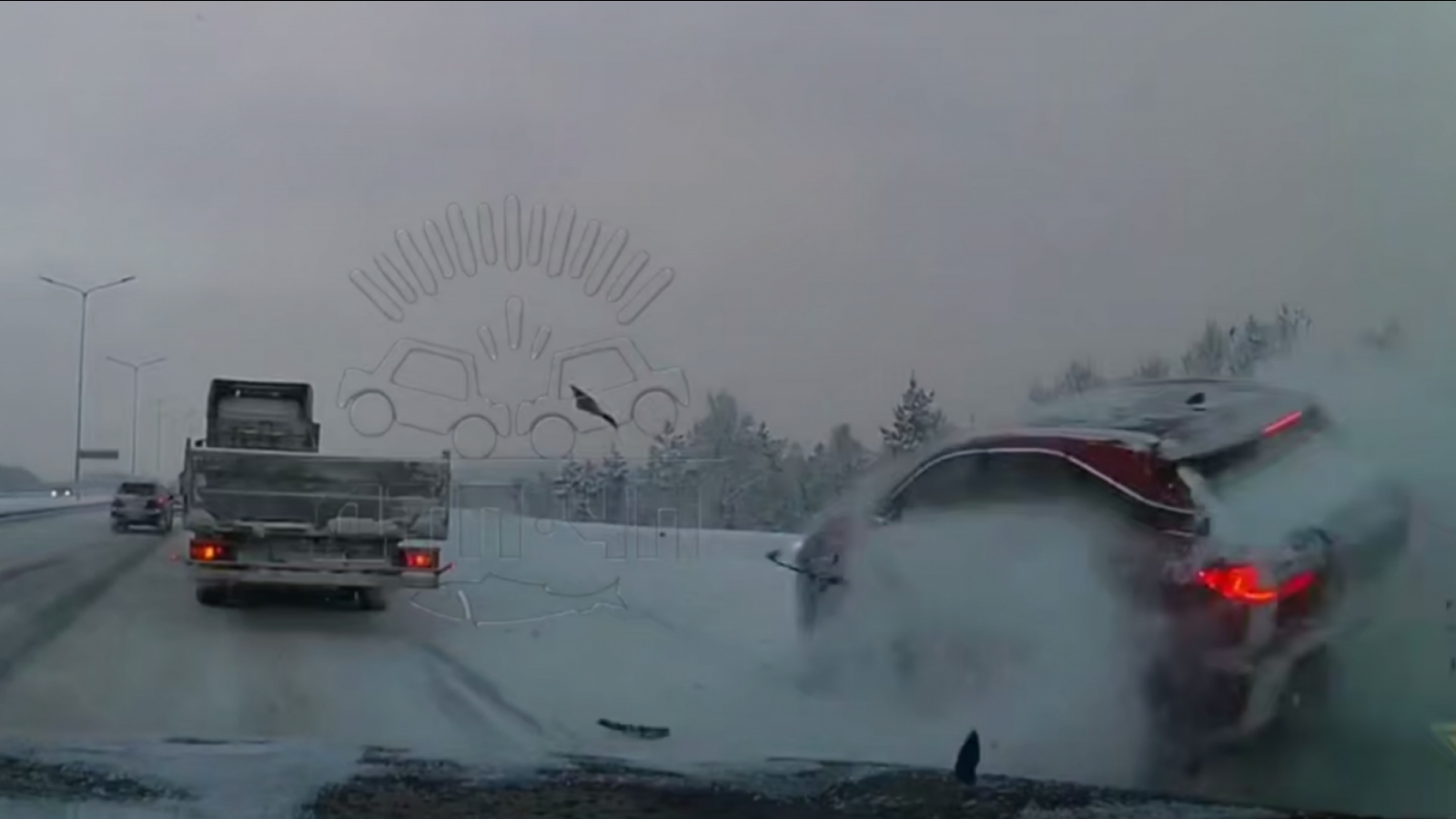 На размещённом в telegram-канале «Мурманск Дтп Чп» ролике видно, что легковушка врезалась в машину и вылетела в сугроб.