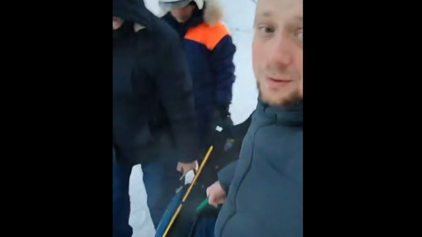 Мурманчане эвакуируют пожилых северян на Аскольдовцев на носилках