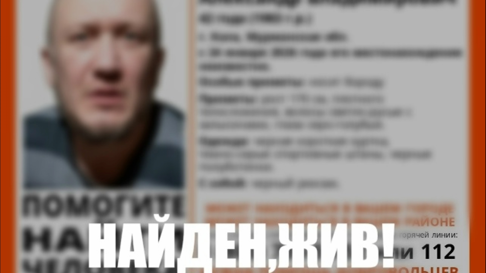 Без вести пропавший 42-летний Александр Семилейских найден живым. Об этом сообщил поисковый отряд «Лиза Алерт Мурманск».