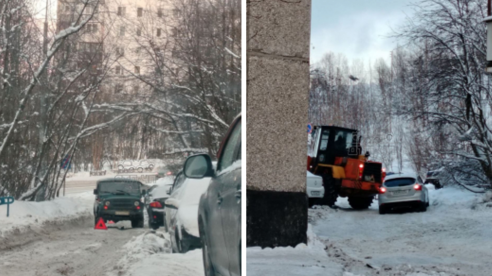 В треугольнике Кольский проспект — Ледокольный — Беринга заблокированы все выезды из дворов.