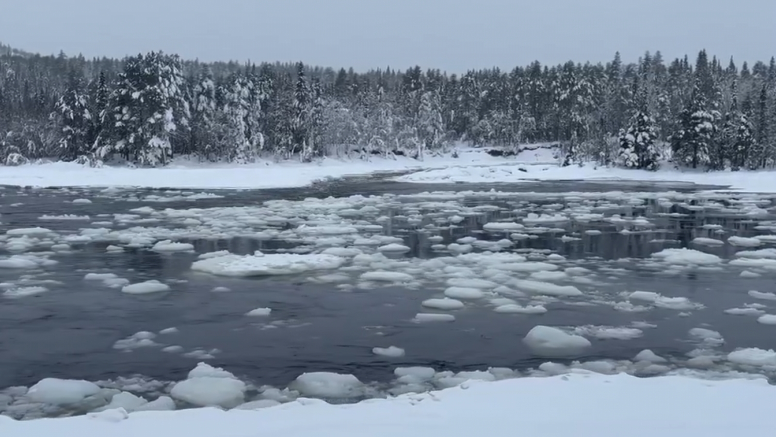 Инспектор Кандалакшского заповедника Максим Пустынный снял «залипательное» кружение льда на реке Умбе.
