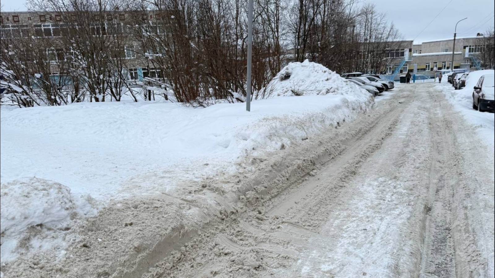 Администрация Мурманска обещала очистить внутриквартальный проезд, ведущий к школе «на следующей неделе.