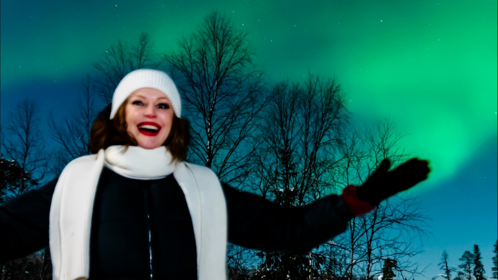 «Мы смеялись, радовались, и я пошутила: «Ура, у нас премьера — мы впервые это увидели!». Словами это передать трудно. На фото красиво, но вживую — просто волшебно: ты понимаешь, что это не шоу и не спецэффект, а настоящее природное чудо. Мороз, хрустящий белый снег, свежайший воздух, заснеженные ели — и над всем этим световая феерия. Кто-то даже сказал: «Это бог «зажигает»!!», - поделилась впечатлениями актриса.