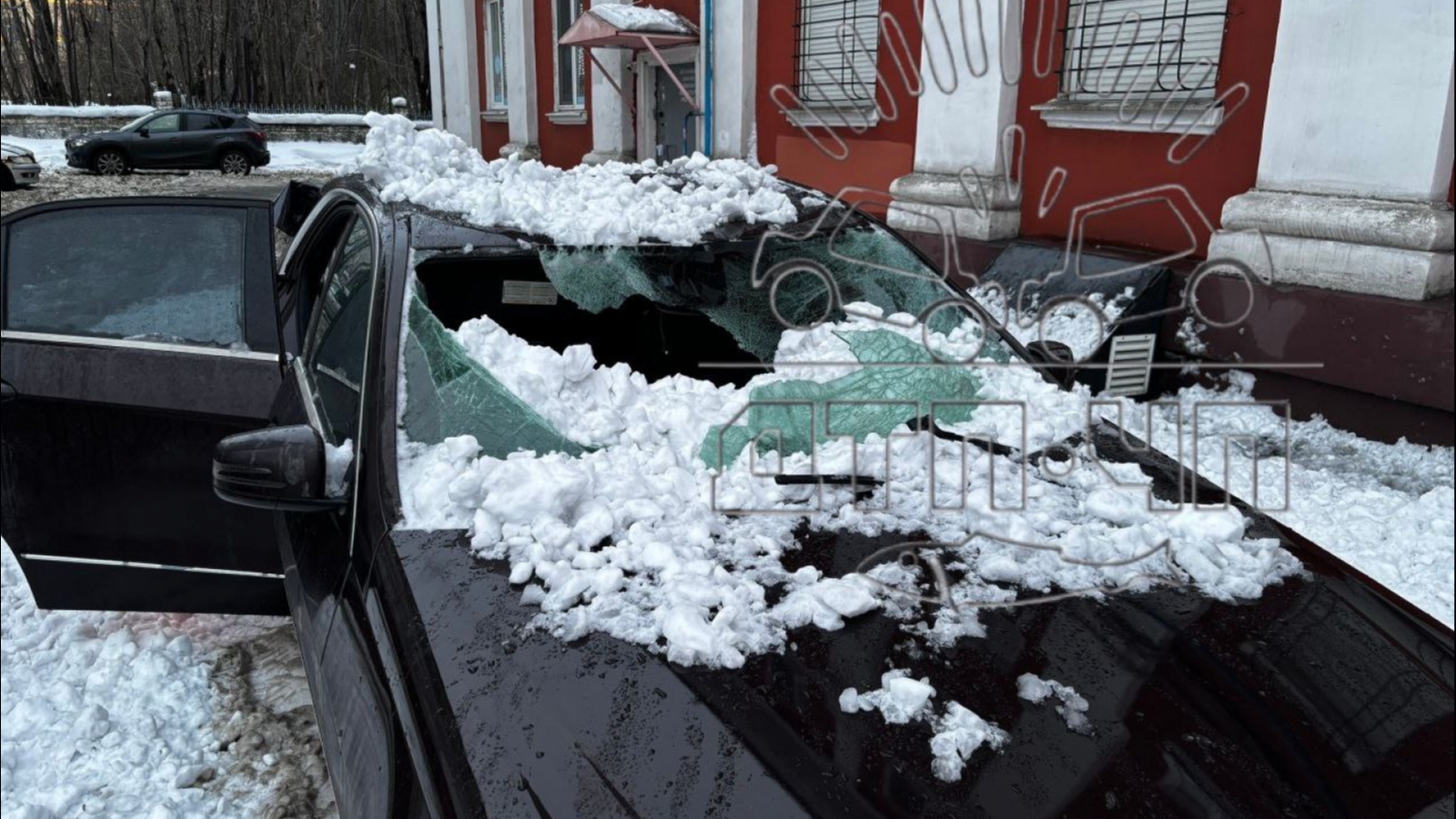 В Мурманске глыба льда разбила легковушку