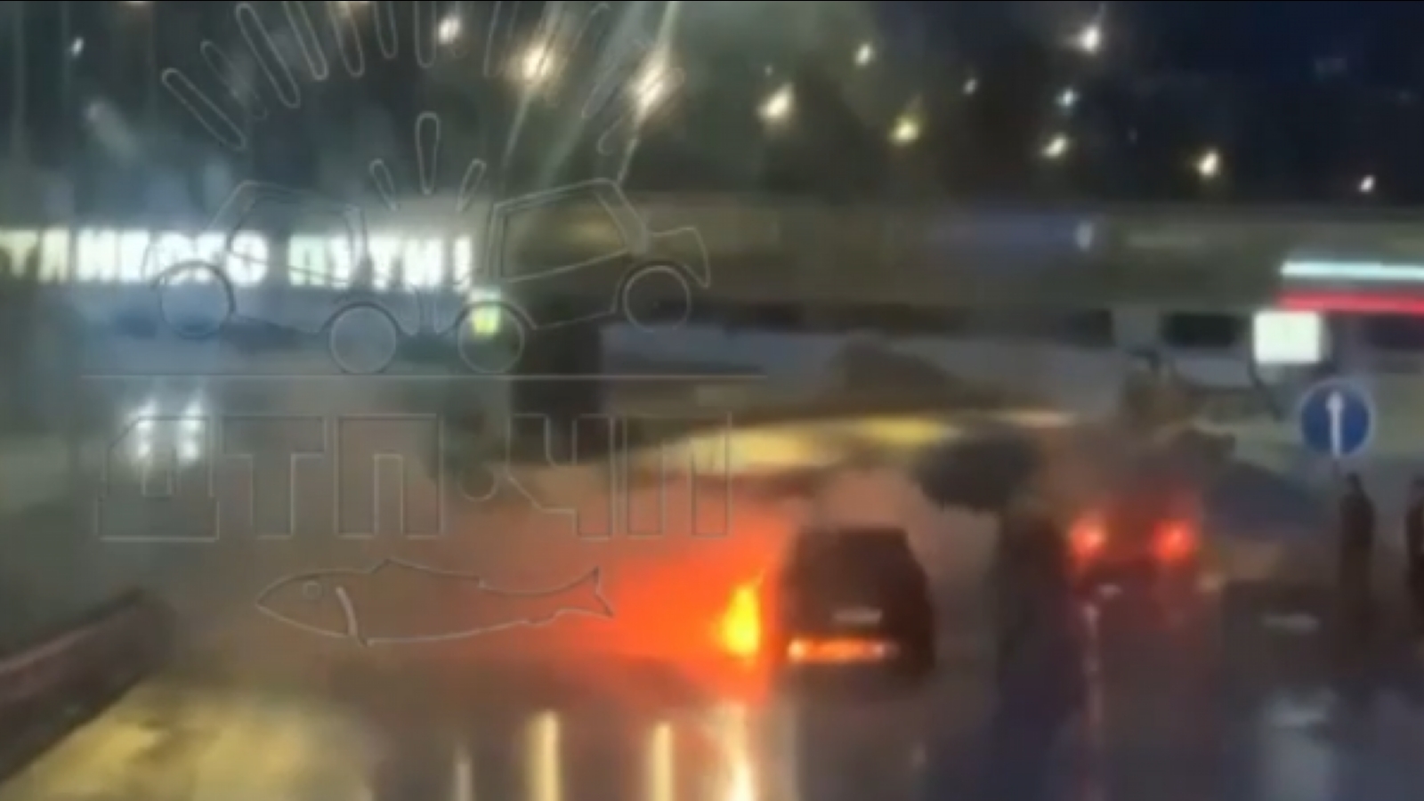 Очевидцы сообщают, что возгорание произошло не в результате аварии. Автомобиль «просто ехал и загорелся».