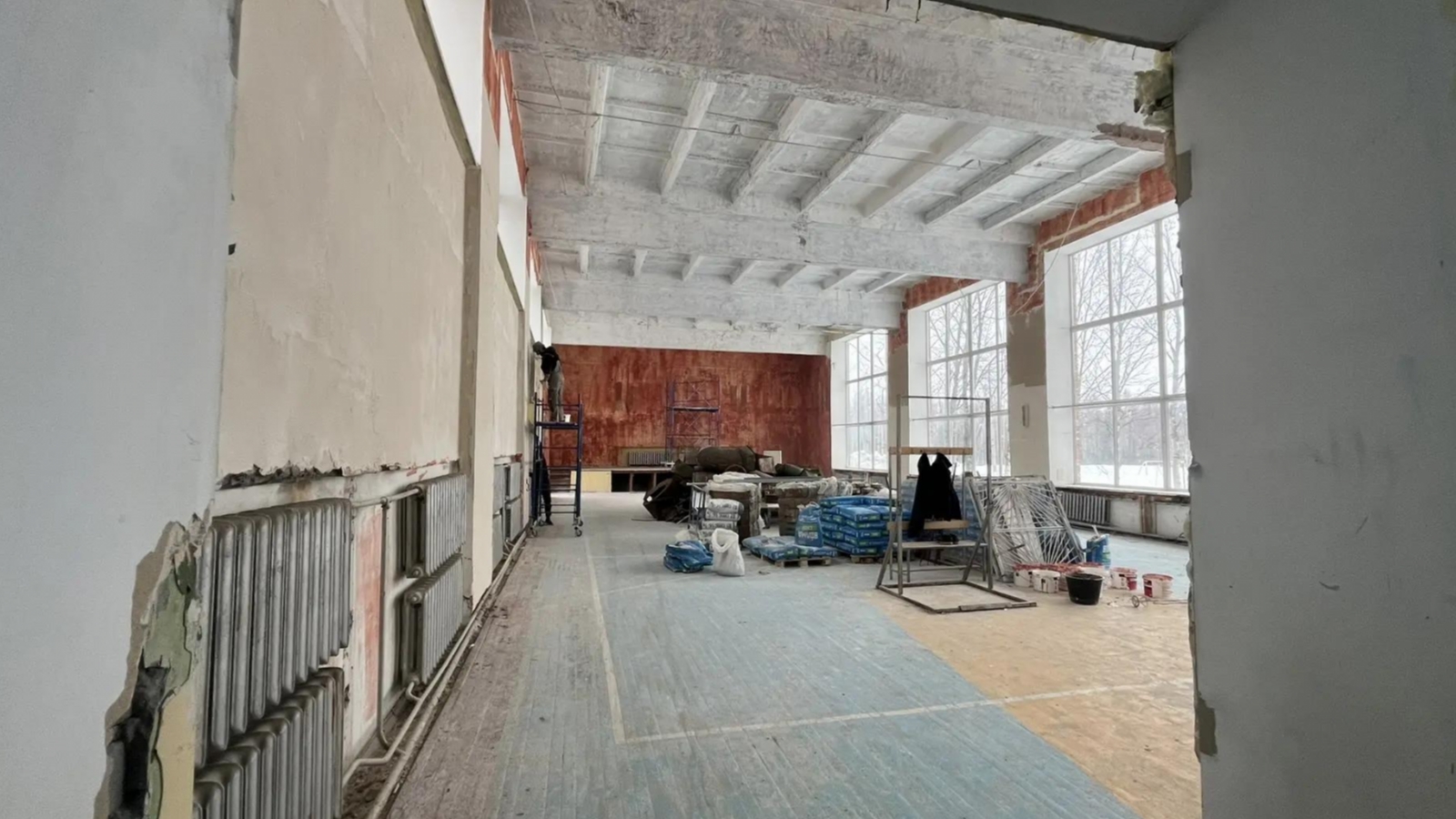 Кипит работа и в Ковдорской школе №2, где подрядчику предстоит привести в порядок спортзал, столовую, крыльцо главного входа, кровлю и отмостку по периметру всего здания. Рабочие пока сконцентрировались на внутренних помещениях, к остальному приступят, когда установятся благоприятные погодные условия.