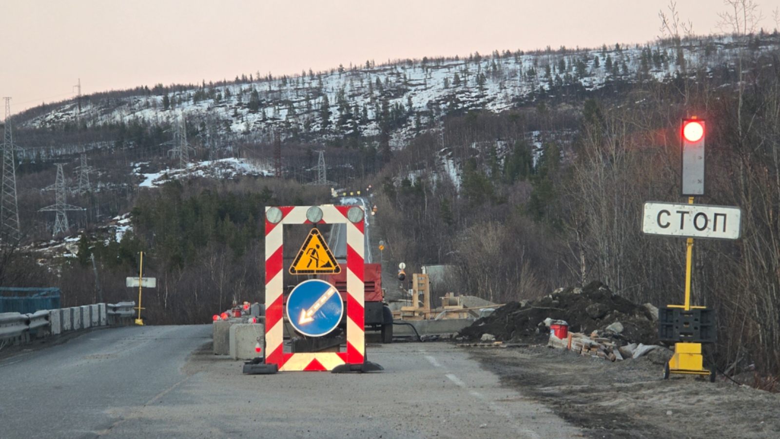 У моста по пути в Териберку поставили светофор