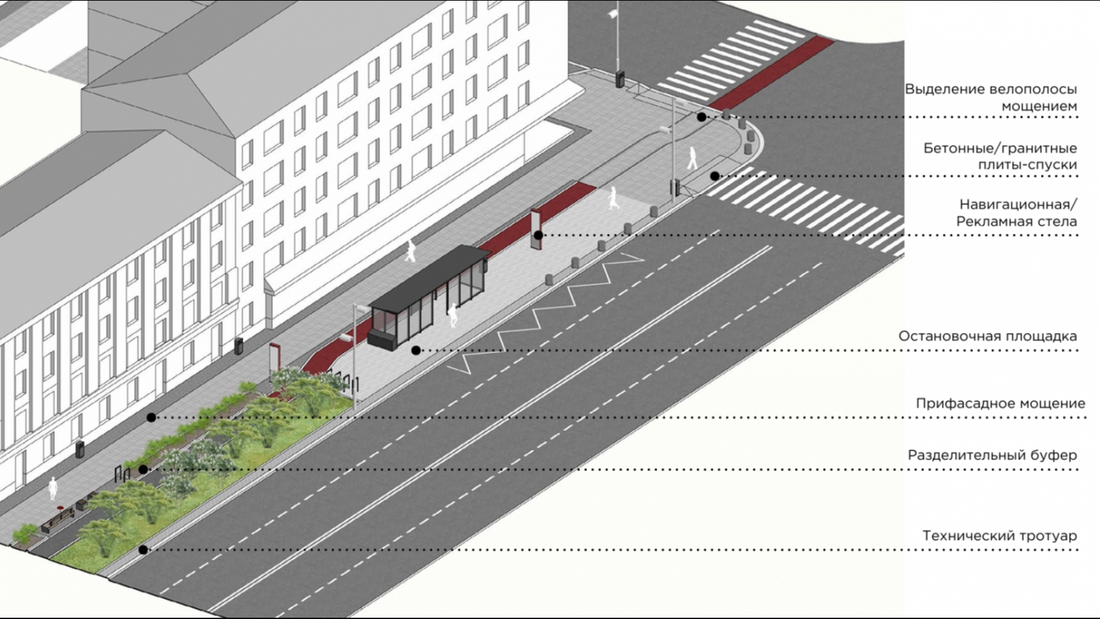 Также будет выполнено мощение улицы, установлены лавочки и навигационный и рекламный стенд, это следует из документов, приложенных к тендеру.
