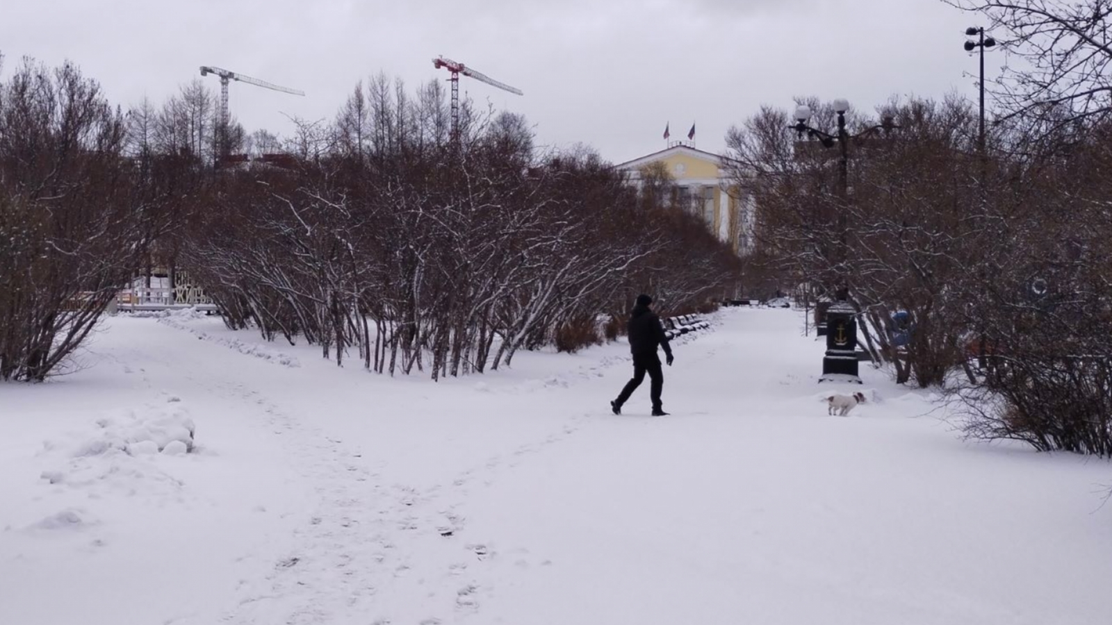 23 04 2026В Мурманске облачная погода. Снег сильный. Ветер северо-западный очень сильный, сильная метель. Температура воздуха от 0 до +2°. Гололедица.